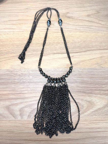 Colar longo em metal grafite.
